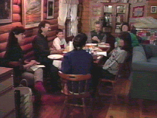 Dining and living area. Guests include Raven Dana and